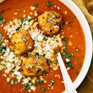 Sopa Tarasca (Pinto Bean Soup) with Jalapeño Corn Fritters