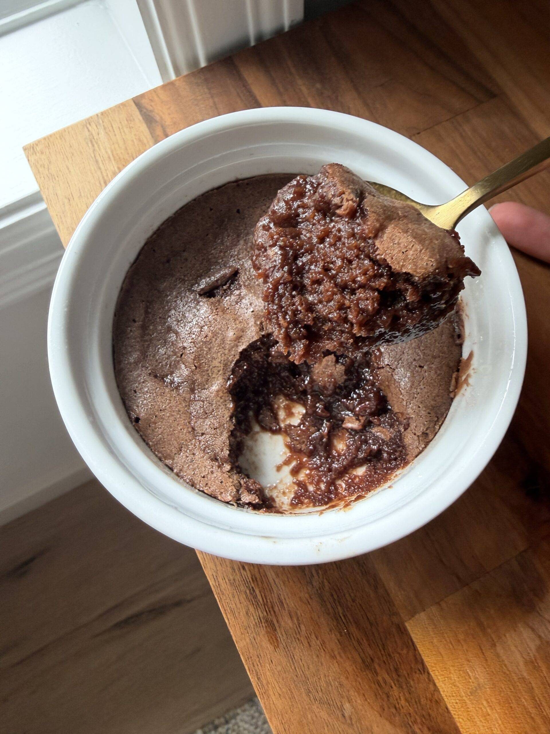 Soooooooo GOOD! Going to be a staple in our home for post dinner quick-ish treats. 10/10 my husband said with a crispy top and gooey inside. We did have to bake about 35+ minutes, but be patient! We used Trader Joe’s cocoa powder and it was perfect.